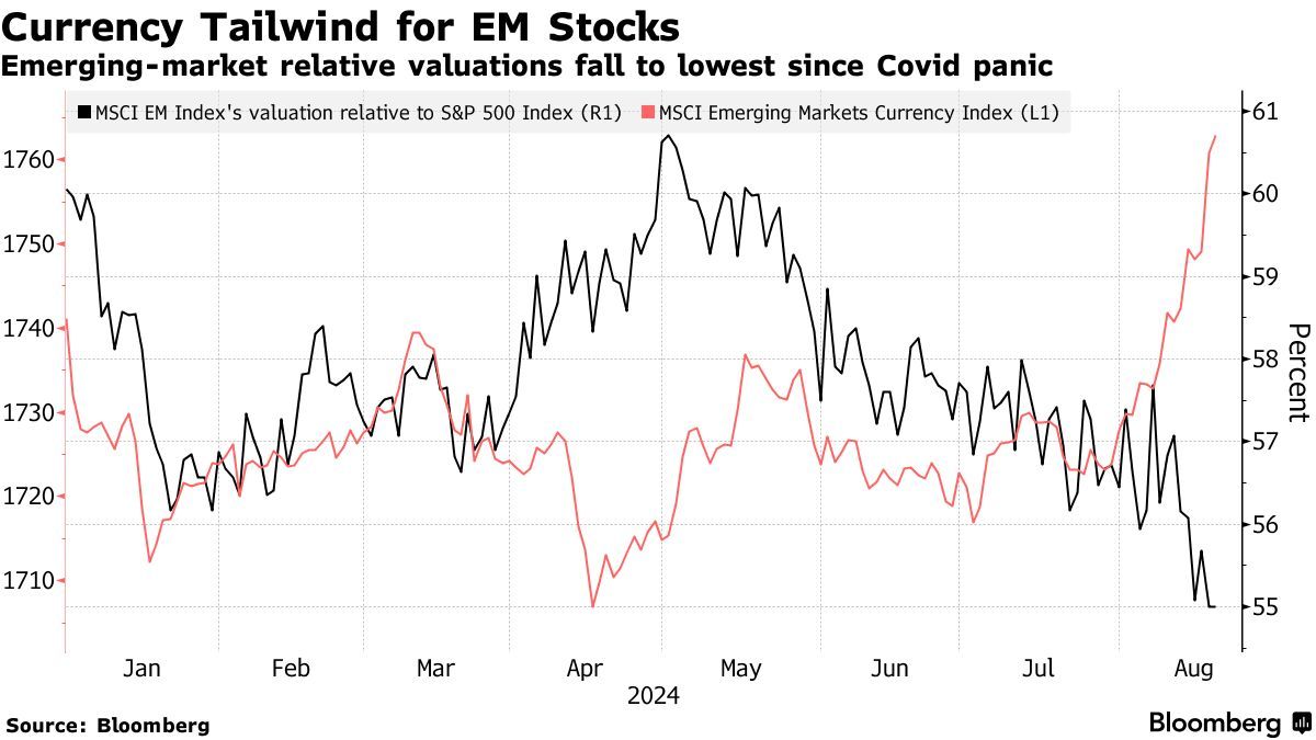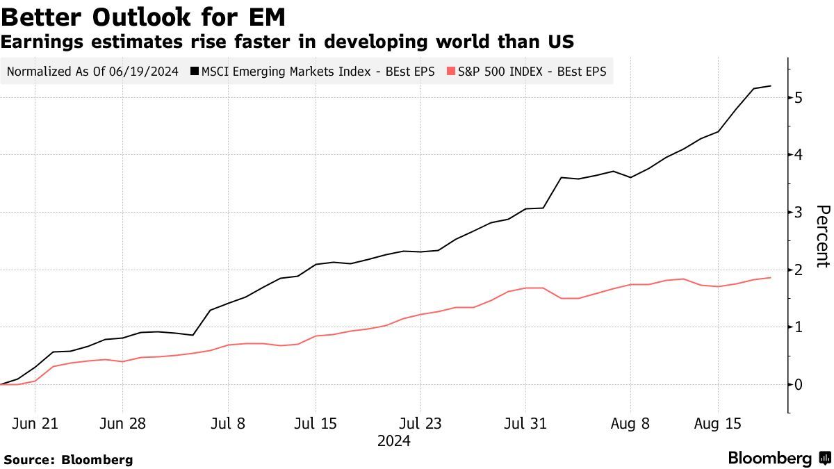 瑞士宝盛银行驻苏黎世的股票策略师Nenad Dinic表示:“尽管盈利预期有所改善,但目前新兴市场相对于标普500指数的估值较低,反映出投资者的犹豫。”“这种谨慎情绪与正在进行的有关美国经济增长的辩论、以及共和党候选人特朗普可能胜选的潜在影响——可能会带来高额关税并严重影响新兴市场的情绪——有关。”