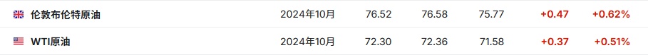 3. 截至发稿,WTI原油涨0.51%,报72.30美元/桶。布伦特原油涨0.62%,报76.52美元/桶。