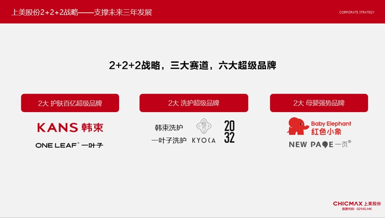 2023年末,上美股份确立了“2+2+2 战略”“六六战略”,提出未来3年,公司将深耕护肤、洗护、母婴三大赛道,布局大众、中高端、高端价格带,成就2大护肤百亿超级品牌、2大母婴强势品牌、2大洗护超级品牌,提升公司穿越经济周期的发展韧性。