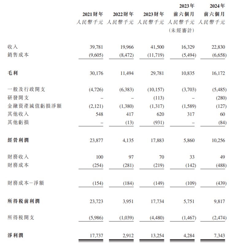 财务方面,于2021财年、2022财年、2023财年及2024年前六个月,集信国控检测收入分别为人民币3978.1万、1996.6万、4150万、2283万元,同期净利润分别为人民币1773.7万、291.2万、1325.4万、734.3万元。