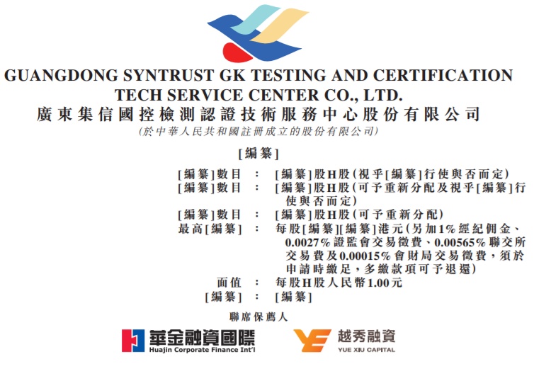 智通财经APP获悉,据港交所8月23日消息,广东集信国控检测认证技术服务中心股份有限公司(集信国控检测)通过港交所创业板上市聆讯,华金融资国际和越秀融资为其联席保荐人。