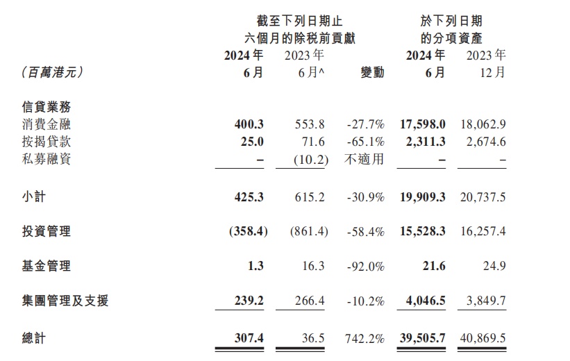 具体来看,公司信贷业务除税前利润4.25亿元,是利润第一大来源;新业务基金管理贡献130万元,集团管理和支援贡献2.39亿元,表现稳定。值得关注的是,投资管理业务亏损的大幅收窄58.4%,是新鸿基公司盈利改善的重要推手。