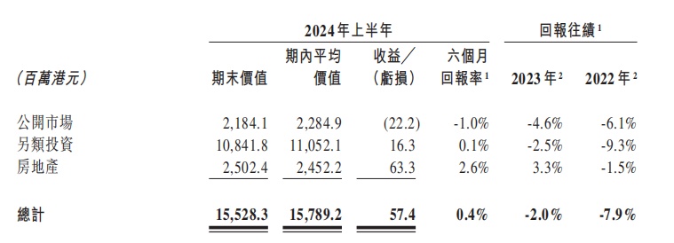 根据智通财经APP了解,投资管理业务由另类投资、公开市场及房地产组成。期内,另类投资及房地产录得未兑现收益1.72亿元,去年同期为-9950万元。该分部表现改善,主要由于公司的对冲基金投资组合在积极调整至保守的投资组合后,录得强劲汇报。私募股权投资组合的估值亦较去年同期趋于稳定。