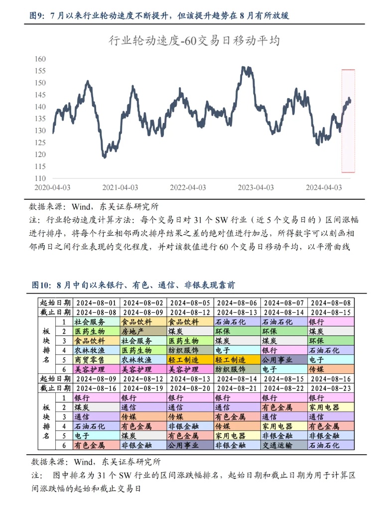 特征四:6月下旬以来,A股行业轮动速度明显提升,但提速趋势在8月迎来放缓。