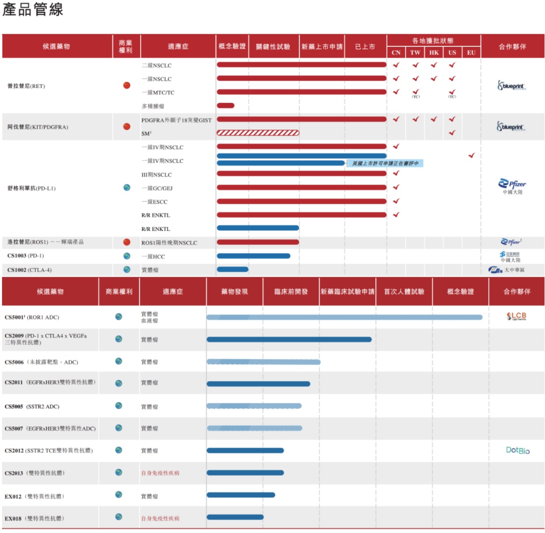值得一提的是,目前基石药业布局的研发管线2.0中有4条为ADC产品管线,其中,靶向PD-1/ CTLA-4/VEGFa的三特异性抗体CS2009是潜在的同类首创/同类最优的下一代肿瘤免疫骨架产品,预计首次人体试验预期于2024/2025年启动。此外,潜在全球同类最佳药物CS5001是其研发管线2.0战略的重磅产品。