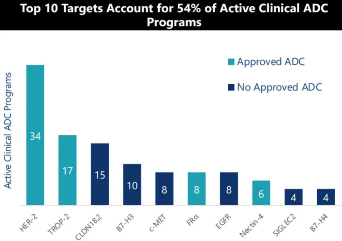 智通财经APP了解到,当前全球前十大热门ADC靶点的临床数量占比高达54%,内卷程度可见一斑。但与众多厂商扎堆HER-2和TROP-2等热门靶点不同,基石药业CS5001差异化地将ADC布局重心放在已初显成药价值且竞争格局良好的ROR1靶点。