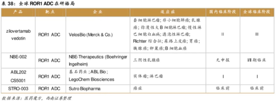 近年来,ROR1因其在CLL、MCL、乳腺癌、卵巢癌、肺癌及前列腺癌等多种血液瘤和实体瘤中的高表达特性,成为生物医药领域的研究热点,被认为是具有广谱抗癌潜力的新药靶点。2020年,默沙东和勃林格殷格翰分别斥资27.5亿美元和11.8亿欧元收购了两款ROR1 ADC,更是为该靶点研发提供了极佳的背书。