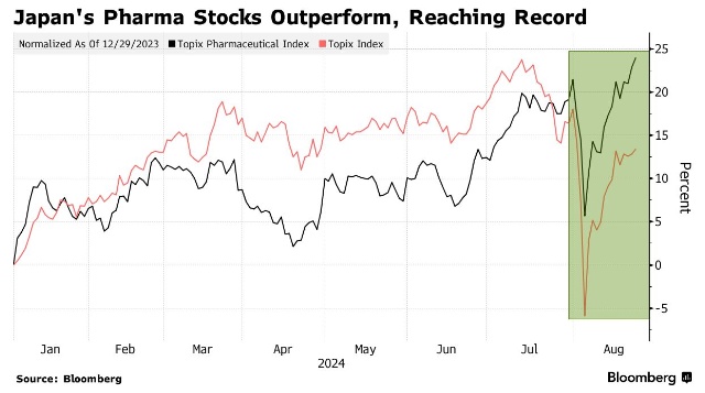 三菱日联资产管理公司首席基金经理Kiyoshi Ishigane表示,日本医药股的全面反弹代表着“全球经济放缓担忧的另一面,这种担忧引发了整体市场调整”。
