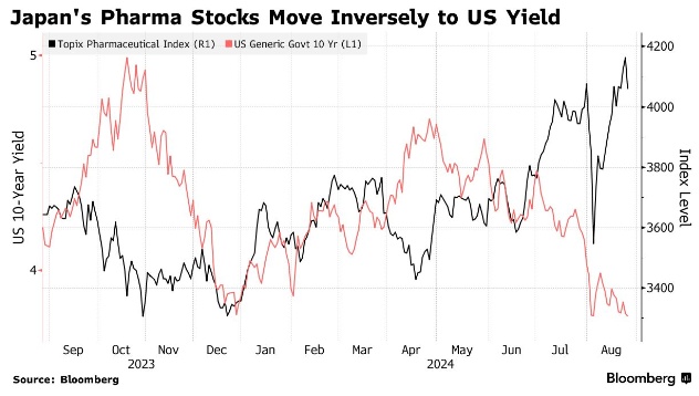 如果投资者对日本股市和经济前景的担忧有所缓解,制药类股票可能会因迄今为止的上涨而面临抛售压力。三菱日联资产管理公司的 Ishigane 并不认为美国经济衰退是他的主要预测,但他仍预计制药类股票的受欢迎程度至少会持续半年左右。
