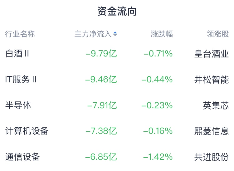 主力资金方面,资金青睐电池、汽车零部件、炼化及贸易等行业;资金出逃白酒、IT服务、半导体、计算机设备等行业。