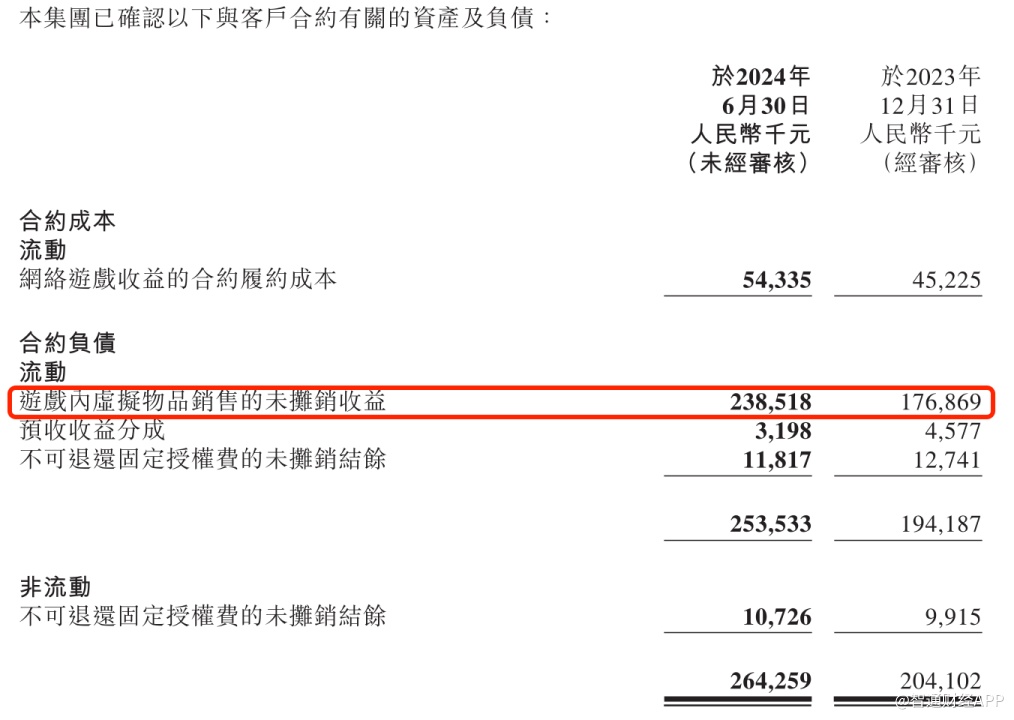 智通财经APP还注意到,截至6月30日,祖龙娱乐的合约负债中,游戏内虚拟物品销售的未摊销收益达到约2.39亿元,同比增长34.9%。祖龙娱乐公司管理层在业绩发布会上表示,这部分未摊销的收益将会随着付费玩家消费,或在付费玩家平均游戏期间按比例确认到未来的收入中。