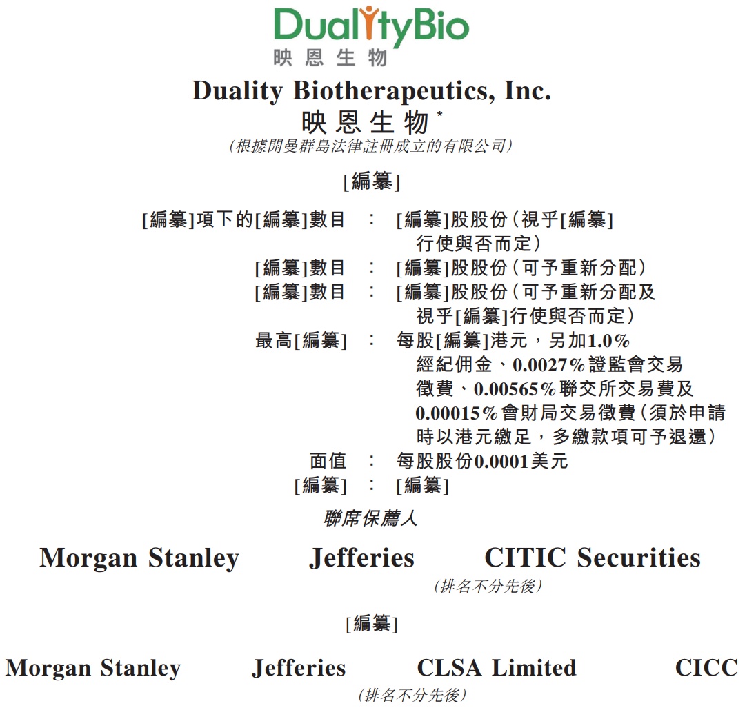 智通财经APP获悉,据港交所8月26日披露,映恩生物(Duality Biotherapeutics, Inc.)向港交所主板提交上市申请,Morgan
