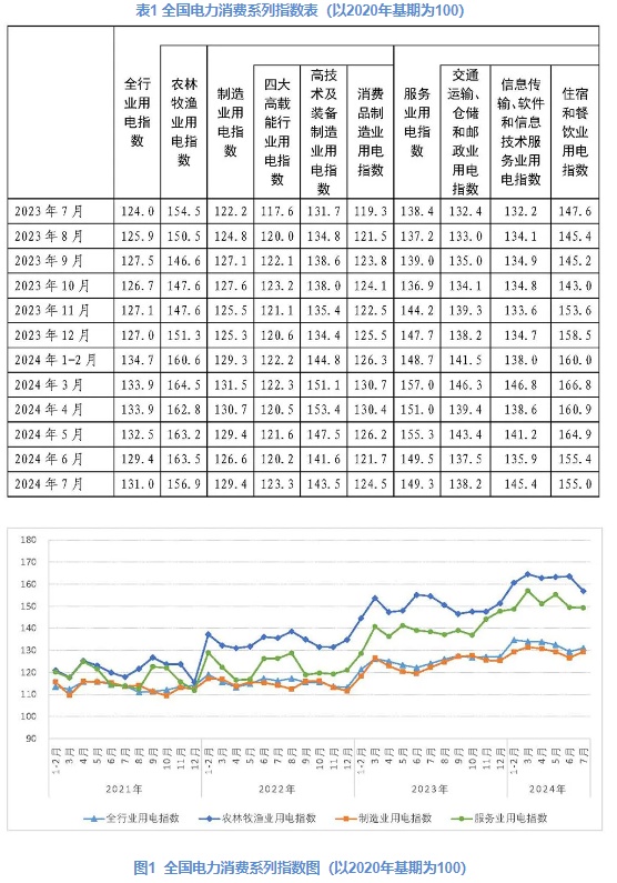 智通财经APP获悉,8月27日,中电联发布2024年7月全国电力消费系列指数情况。2024年7月,全行业用电指数为131.0,全行业用电量比2020年基期增长了31.0%,年均增长7.0%,同比增长5.6%。国民经济运行总体稳定,全行业用电量保持平稳较快增长。
