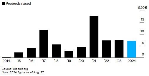 尽管Ola Electric Mobility Ltd.等踏板车制造商的成功上市,以及现代汽车公司印度子公司计划的本地上市吸引了众多目光,但大多数公司的上市规模要小得多。在2024年于印度证券交易所上市的200多家公司中,约有三分之二的公司融资额不超过1000万美元。
