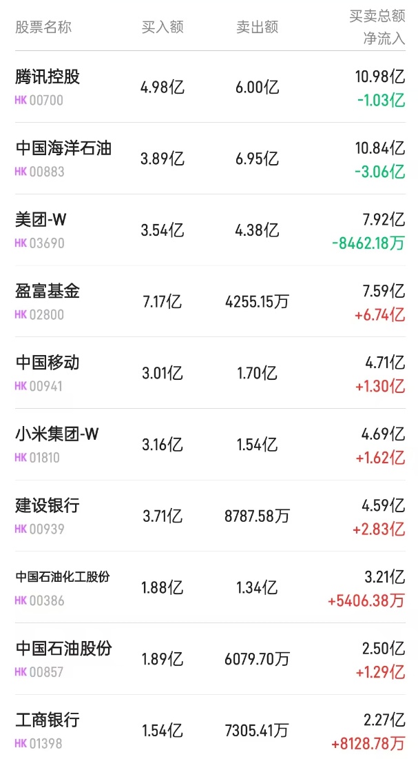 此外,小米集团-W(01810)、中国儒意(00136)分别获净买入1.57亿、2787万港元。而腾讯(00700)遭净卖出3380万港元。