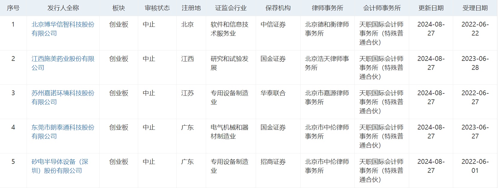 嘉诺科技、矽电股份等5家企业深交所IPO审核状态变更为“中止”