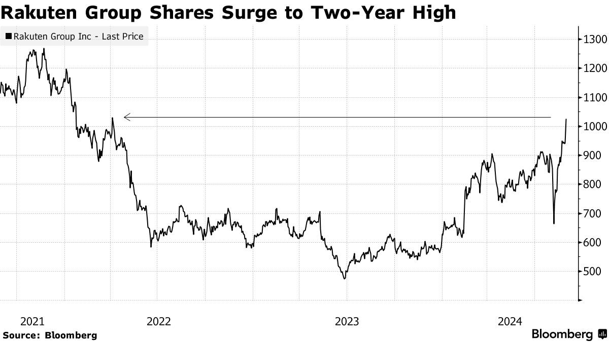 智通财经APP获悉,日本电子商务公司乐天集团的股价攀升至2022年4月以来的最高水平,此前包括摩根士丹利三菱日联证券在内的经纪公司上调了对该股的目标价,原因是该公司在移动业务方面取得了成功。数据显示,截至发稿,乐天集团在日本上市的股票涨逾9%。