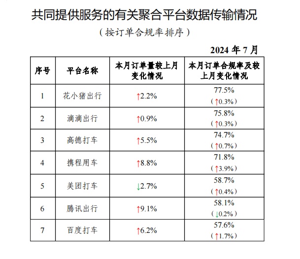 其中,面向乘客、与网约车平台公司共同提供服务的平台(俗称“聚合平台”)完成2.62亿单,环比上升5.7%。按订单合规率由高到低的分别是花小猪出行、滴滴出行、高德打车、携程用车、美团打车、腾讯出行、百度打车。
