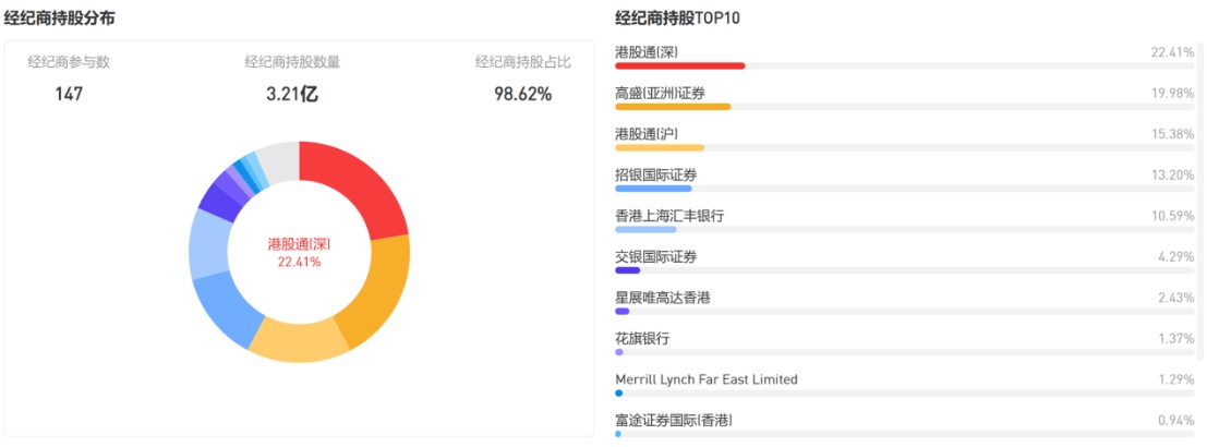 此次财报的关键财务数据显示出,云顶新耀已形成一个拥有稳健支撑的强劲基本面,且公司基本面形态符合当前港股生物医药的投资逻辑。值得一提的是,不论是券商还是机构的持仓席位都已高度集中,截至目前公司券商持股占比甚至已高达98.62%。这意味着,随着此次公司中报披露的强劲基本面落地,引发市场上多头抢筹,进而快速拉升股价。