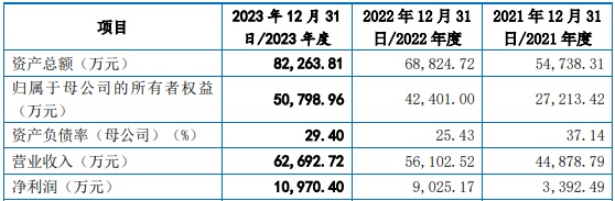 财务方面,2021年度、2022年度、2023年度,贝特电子实现营收分别约为4.49亿、5.61亿、6.27亿元人民币,同期净利润分别约为3392.49万、9025.17万、1.10亿元人民币。