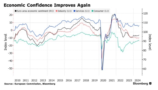 尽管有迹象表明,欧元区20国的经济扩张似乎正在减弱,但上述数据还是呈现出积极的变化。出现悲观情绪的主要原因是该地区最大的经济体德国,其产出在4月至6月期间意外萎缩。除了巴黎奥运会带来的暂时提振外,标普全球的商业调查显示,私营部门的潜在活动正面临压力。