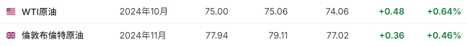 3. 截至发稿,WTI原油涨0.64%,报75.00美元/桶。布伦特原油涨0.46%,报77.94美元/桶。