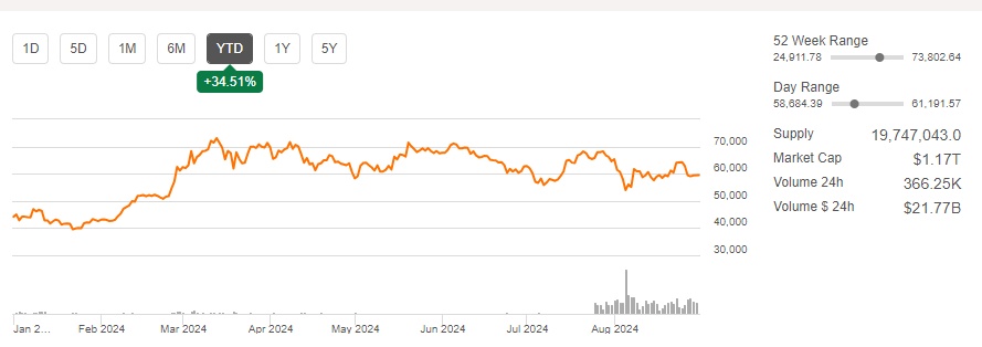 智通财经APP获悉,今年以来,比特币价格累计上涨逾30%,尽管期间经历过了多次波动,包括在8月初出现的剧烈回调,这大幅打消了不少投资者对该加密货币将冲破10万美元的期望,但是,种种迹象似乎仍然表明,比特币有能力在年底前达到六位数。