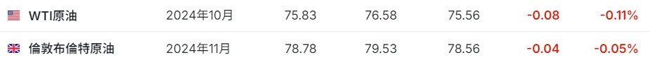 3. 截至发稿,WTI原油跌0.11%,报75.83美元/桶。布伦特原油跌0.05%,报78.78美元/桶。