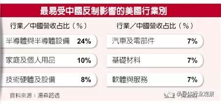尽管美方加征关税的中国半导体项目并不多,但由于中国半导体市场长期难以自给自足,并大量依赖进口,业者產品想走出国门并不容易。如今在美方加深封锁下,其产能成长或将遭遇阻碍,也连带将使在中国市场有庞大业务的美国半导体业者受到影响。