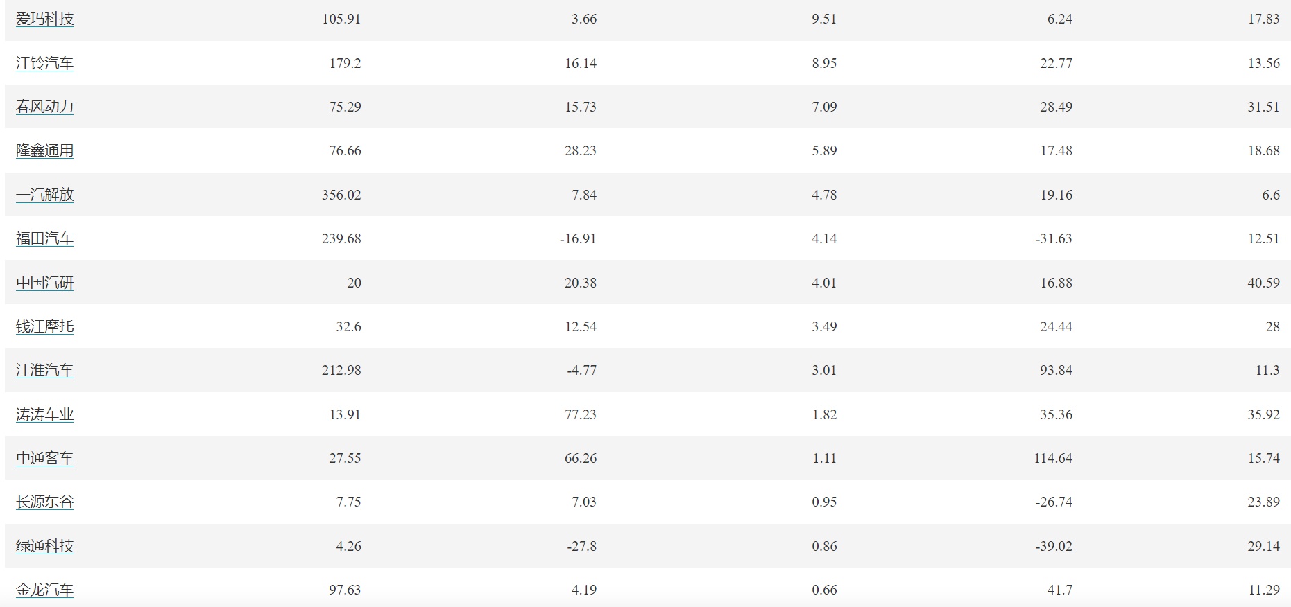 从净利润增幅来看,20家公司2024年上半年净利润同比增长,其中7家公司净利润增幅超50%,长城汽车、宇通客车、赛力斯排名居前,净利润增幅分别为419.99%、255.84%、220.85%。