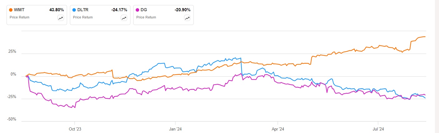 例如,Evercore ISI分析师Michael Montano表示,达乐公司的业绩显示,在美国经济增长放缓的环境下,维持市场份额是一项挑战,而沃尔玛将胜出。
