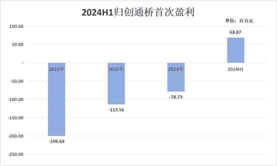 近期,归创通桥发布了其2024年中报。从财报来看,上半年归创通桥实现营业收入3.66亿元,同比增长59.0%;毛利润2.61亿元,同比增长52.4%;净利润0.69亿元,首次实现净利润盈利。业绩实现盈利,标志着归创通桥业务模式已跑通,成为港股18A器械中率先实现自我造血、可持续性增长的企业之一。