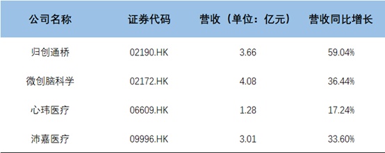 根据最新披露的业绩来看,上半年几家国产神经介入医疗器械企业都取得双位数的增长,而归创通桥以59.04%的增长位居榜首。