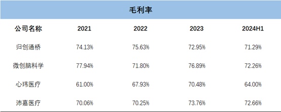 不过从毛利率及销售费用率的差值来看,微创脑科学以58.52%的差值位居榜首,归创通桥以50.05%位居第二。值得一提的是,在毛利率都下降的情况下,上半年归创通桥的销售费用率下降幅度大于微创脑科学,表明归创通桥运营水平提升更显著。