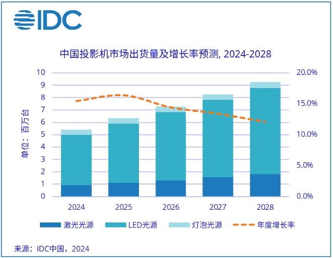 智通财经APP获悉,国际数据公司(IDC)最新发布的《2024年第二季度中国投影机市场跟踪报告》显示,2024上半年中国投影机市场出货量256.8万台,同比增长9.6%。销售额为67.7亿元人民币,同比下降7.6%。其中智能投影机市场(搭载有OS操作系统的投影机设备)出货量为218万台,同比增长10.3%。IDC预计,至2028年中国投影机市场销量有望超过926万台,五年复合增长率仍将超过14%。