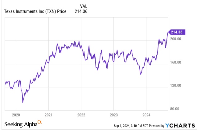 上周,芯片制造商德州仪器(TXN.US)股价继续上涨,创下历史新高,突破了此前的阻力位200美元大关。