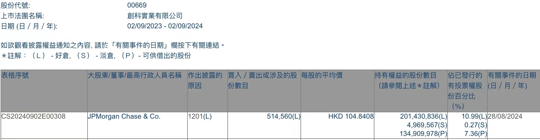智通财经APP获悉,香港联交所最新资料显示,8月28日,小摩减持创科实业(00669)51.4560万股,每股作价104.8408港元,总金额约为5394.69万港元。减持后最新持股数目约为2.01亿股,最新持股比例为10.99%。