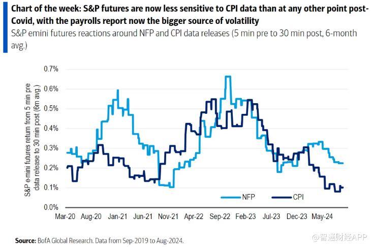 智通财经APP获悉,根据美国银行全球研究的分析,标普500指数的期货合约对美国就业报告的敏感度已经超过了对通胀数据的反应。