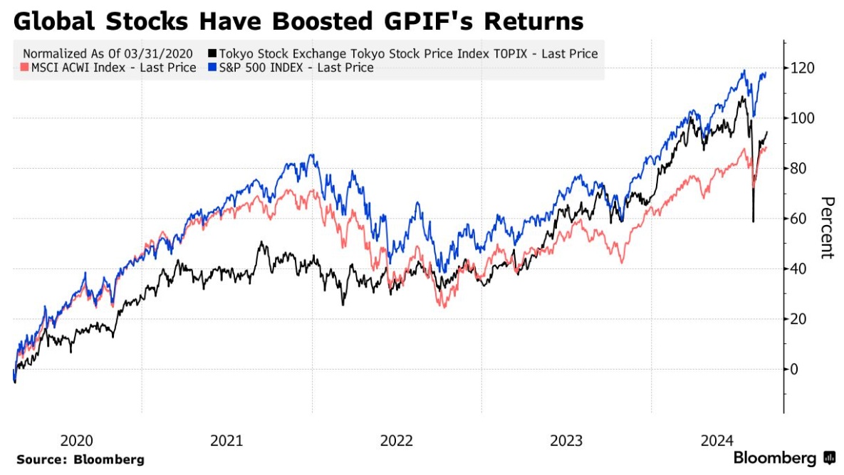 “GPIF 的任何举措都将产生巨大影响,”东京 NLI Research Institute 首席股票策略师Shingo Ide表示。“GPIF 上一次增加对日本股票的配置已经是 10 年前的事了。”