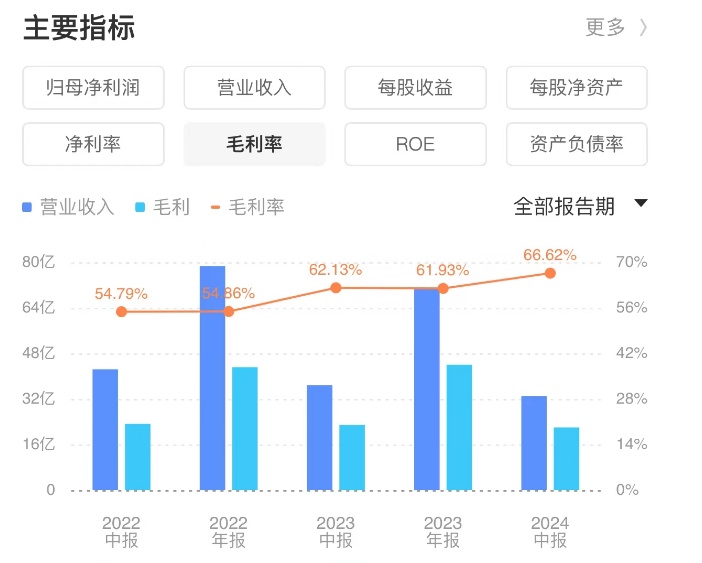 根据智通财经APP统计,2022年中期网龙的毛利率为54.79%,2023年中期提升至62.13%,2024年中期这一数字再度提升至66.62%。这个毛利率亦是过去三年来的最好水平。