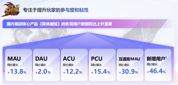 2024年上半年,《魔域》核心国内端游产品新增用户同比增长46.4%,MAU同比增长13.8%。目前,网龙已经制定了全面深入的计划,围绕年轻化、多元化发展《魔域》IP,注重游戏画面升级、跨品类联动以及新魔域IP产品研发,进行泛娱乐领域IP扩张,《魔域》IP寿命的延长和商业化价值的释放,未来《魔域》IP 生命力有望不断提升,驱动公司实现业绩长效增长。