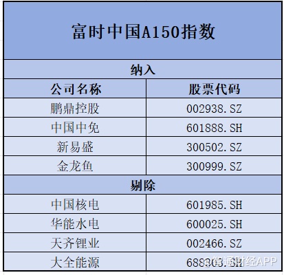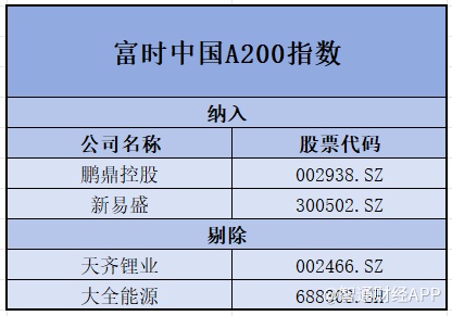 富时中国A200指数成分股将纳入鹏鼎控股、新易盛,同时剔除天齐锂业、大全能源。