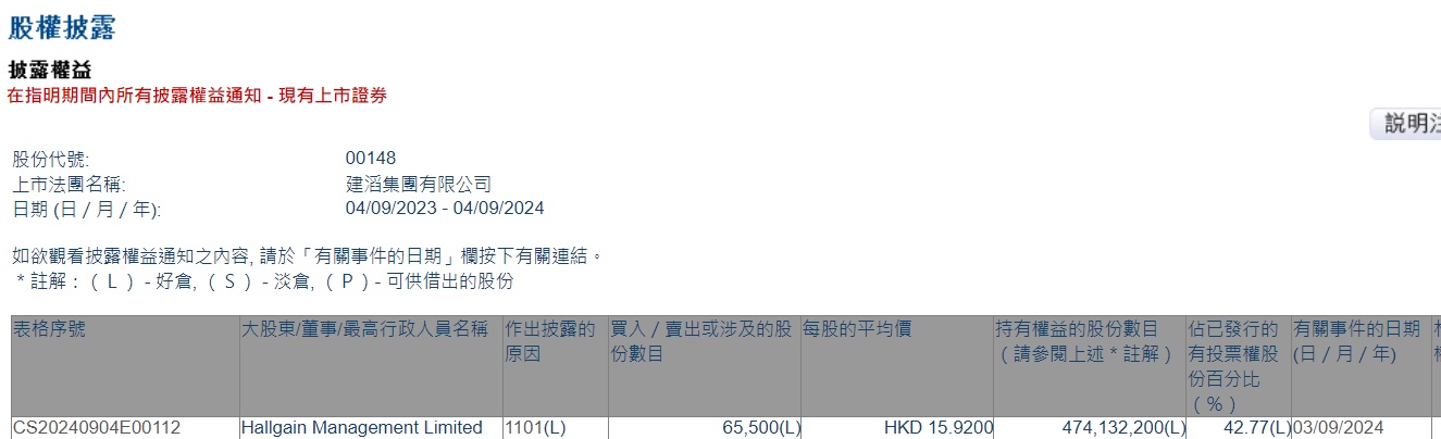 智通财经APP获悉,香港联交所最新资料显示,9月3日,Hallgain Management