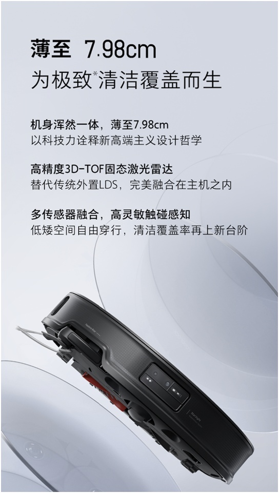 如今,随着大众生活环境品质的不断提升,家装风格趋于更加个性多元,这为家居清洁工作带来更大挑战,进一步实现低矮空间及复杂环境下的高效清洁,成为扫拖机器人旗舰产品攻克的重点之一。石头G20S Ultra实现7.98cm超薄机身尺寸,这不仅意味着底层技术的又一次突破,更代表着有效清扫面积的增大,床底、沙发底等众多低矮空间全面覆盖,内置众多传感器保障其在低矮空间自如畅行,不被卡困,清洁覆盖率再上新台阶。