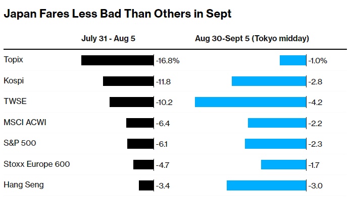 放大8月份跌幅的一个因素是日本散户投资者被迫抛售,他们不得不平仓膨胀的保证金交易头寸。东京T&D资产管理公司的高级交易员Yusuke Sakai说:“这些头寸已经清算了。我们不太可能看到像以前那样的恐慌性抛售。”