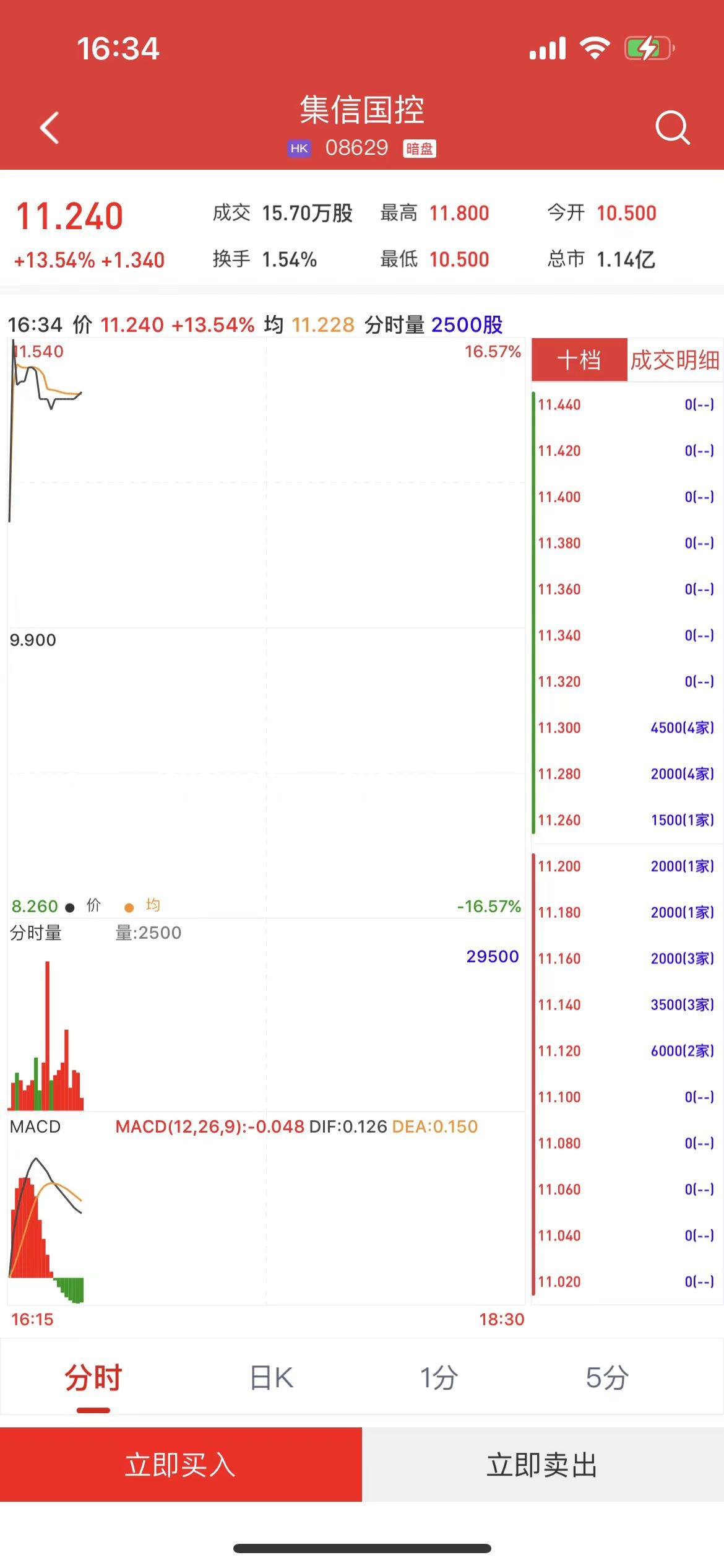 智通财经APP获悉,集信国控(08629)将于9月6日(周五)在香港挂牌。截至发稿,利弗莫尔证券暗盘交易显示报价11.24港元,较招股价9.9港元上涨13.54%。每手500股,不计手续费,每手赚670港元。