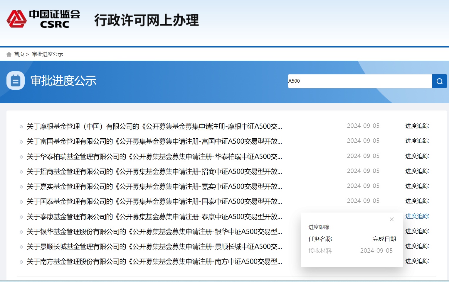 智通财经APP获悉,9月5日,中国证监会官网显示,首批十只中证A500ETF集体迎来上报,上报的公募机构包括华泰柏瑞基金、摩根资产管理、富国基金、招商基金、泰康基金、景顺长城基金、嘉实基金、国泰基金、南方基金、银华基金。同时,泰康基金还上报了中证A500ETF联接基金。