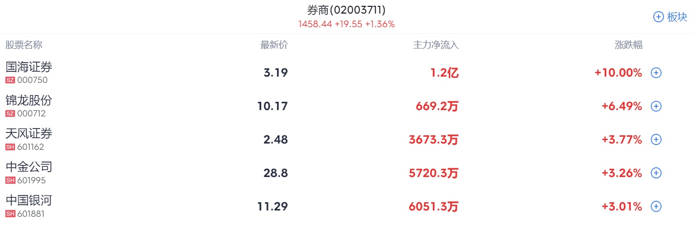 两大头部券商官宣合并,证券板块开盘领涨,国海证券竞价涨停,锦龙股份、中国银河、国联证券、天风证券、中金公司等集体高开。