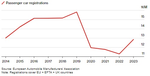 事实上,欧洲汽车制造商在电动汽车领域的落后状况并非一蹴而就。特斯拉和比亚迪去年在纯电动汽车销量上已超越了多家欧洲传统车企的总和。此外,欧洲汽车市场尚未从疫情中完全恢复,整体销量仍低于疫情前水平,这也对传统汽车的盈利能力构成了压力。在这样的背景下,大众汽车等巨头不得不面对工厂过剩的困境,并试图通过调整与工会的关系来应对销量下滑。