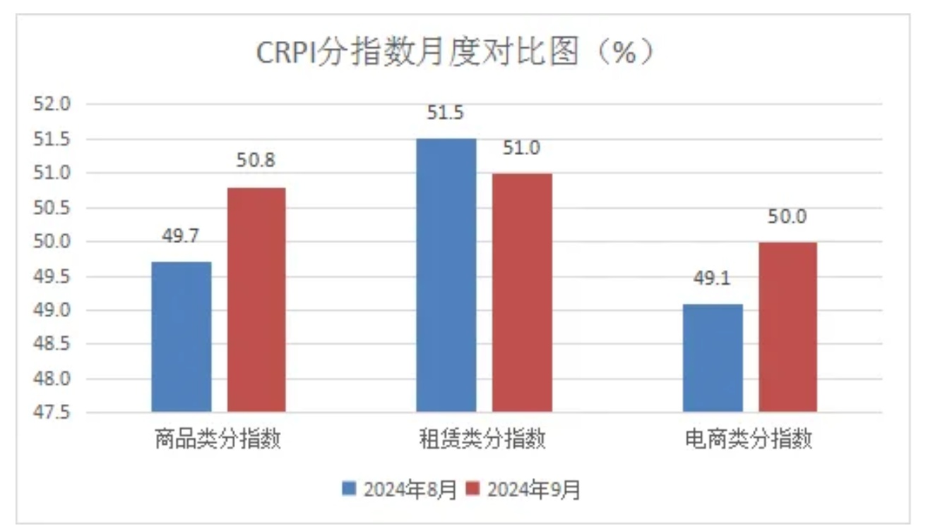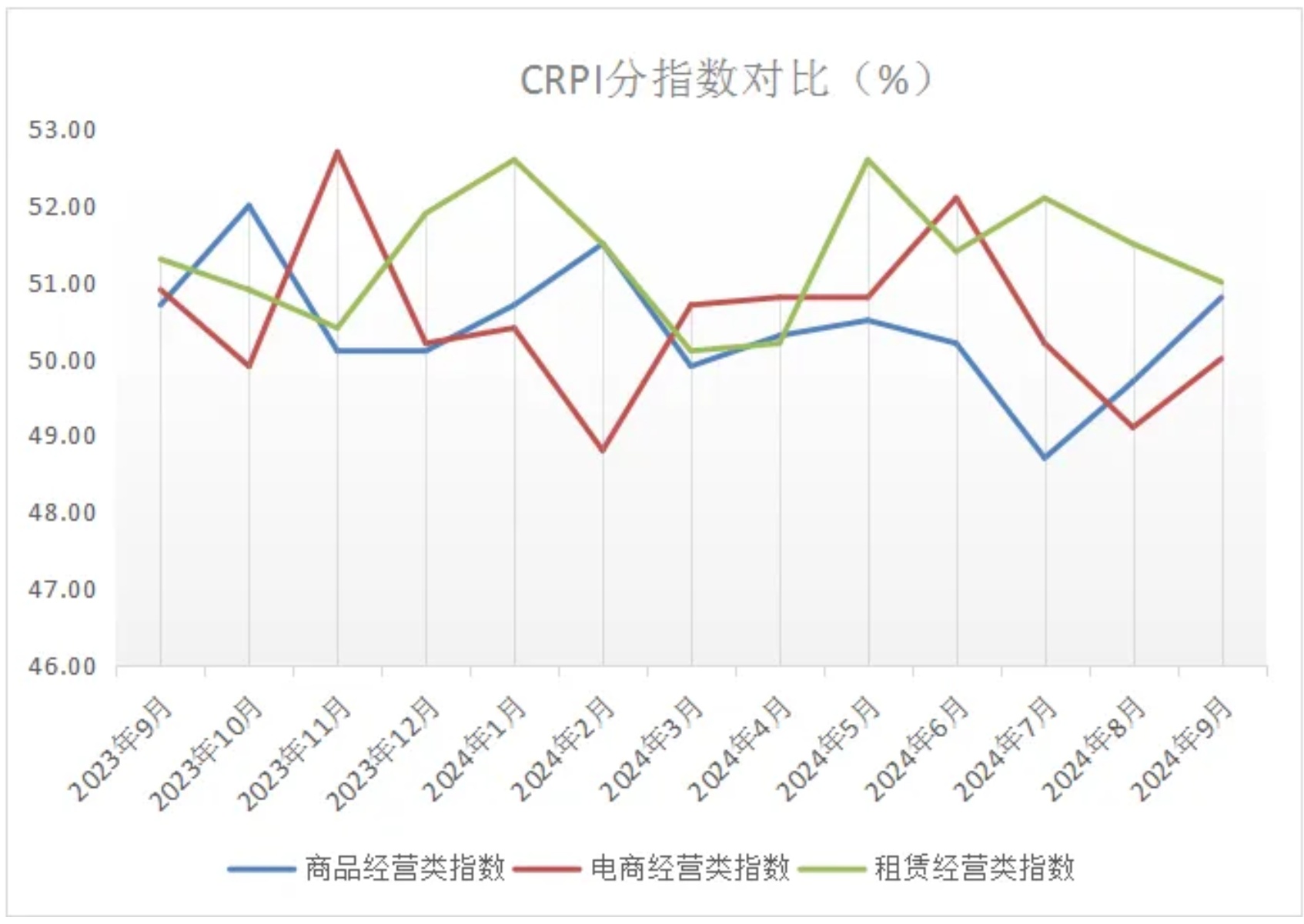 (一)CRPI三个分指数对比显示,9月份商品经营类指数和电商经营类指数重回扩张区间,提振消费政策效力有所显现。